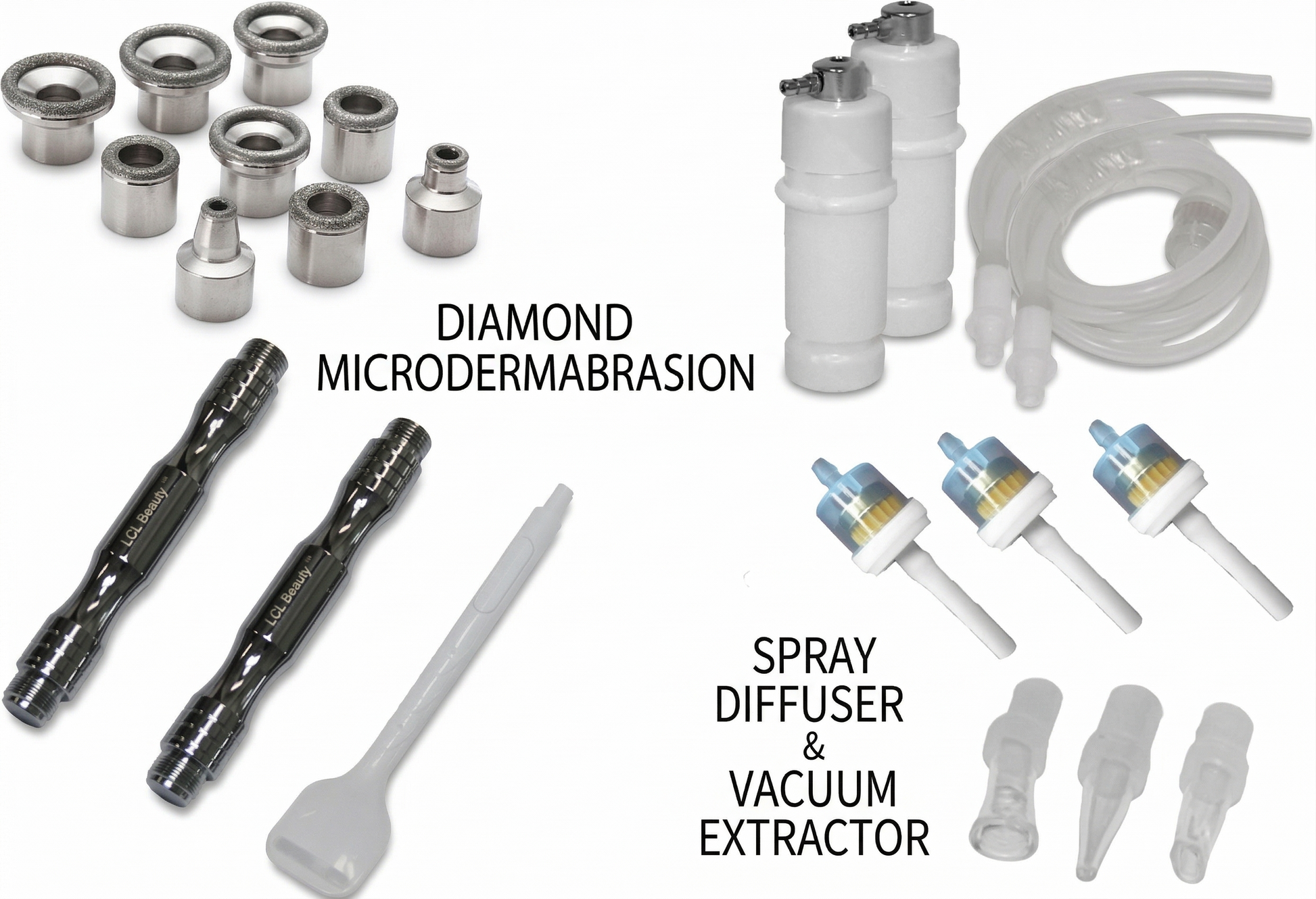 Our Microdermabrasion comes with two different interchangeable toolsets (traditional, and a new patented solid-core double-tipped wand with skin tightening vacuum wand), so you can use whichever protocol you wish for your client’s treatments.