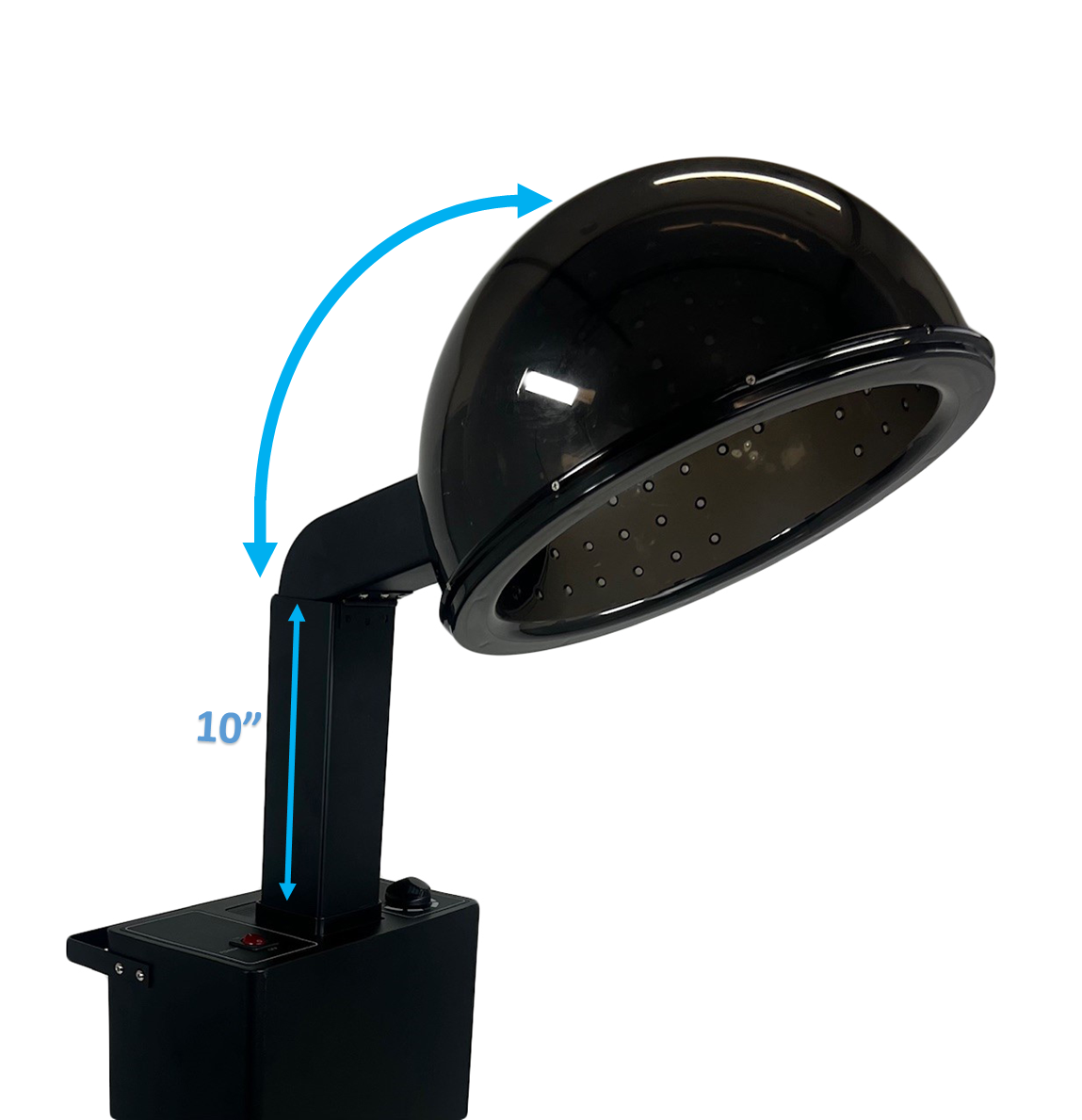 - The smoke-gray hood has a 12" interior diameter and can be raised an additional 10" for taller clients