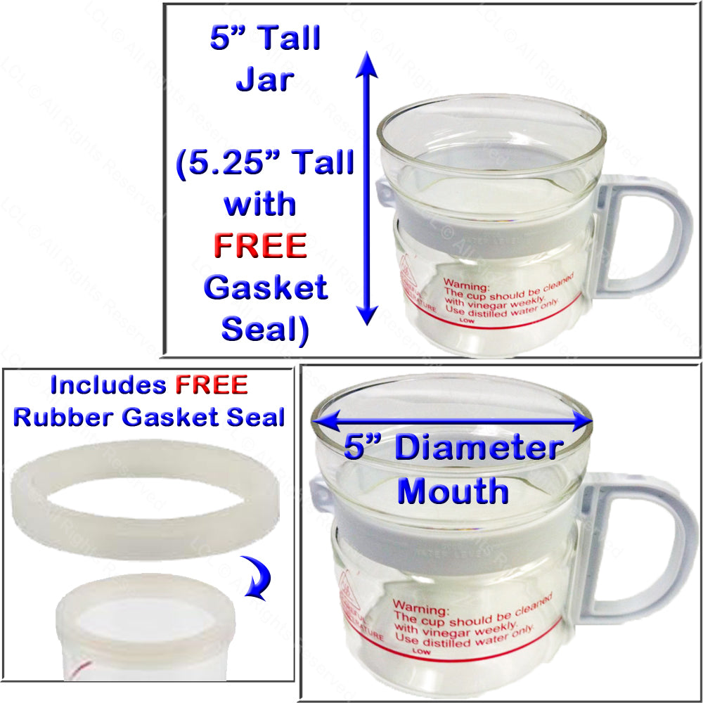 Replacement Steamer Jar that fits most industry steamers with a 5" Diameter Jar Opening. This will fit all LCL Beauty Facial Steamers except for the models listed in the table above.